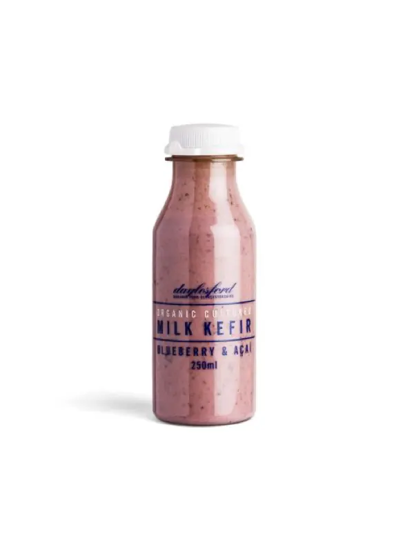 Fermented organic milk with the live cultures we love. Made by hand on our farm with milk from our grass pastured cows, açaí & blueberries. A good source of protein, calcium & B12. You can buys this product from Daylesford